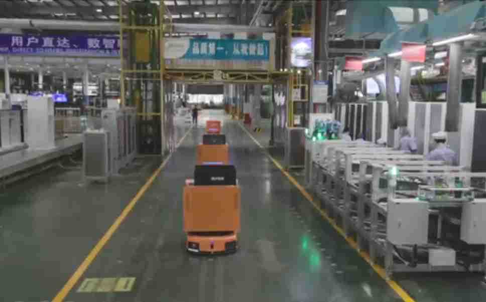 为车载冰箱物流配送打造的智能解决方案,,,,包含产中物流通过潜伏举升AMR搬运至线边,,,,产后成品物流智能仓储,,,流程包含产中物流智能齐套入库,,线边安灯叫料AMR智能配送至线边,,,成品入库、、、、出库,,,,通过无人堆高车机器人,,,智能仓储管理替代人工作业管理,,,实现更高存储、、更高效率、、、、更具柔性化的解决方案。。。。